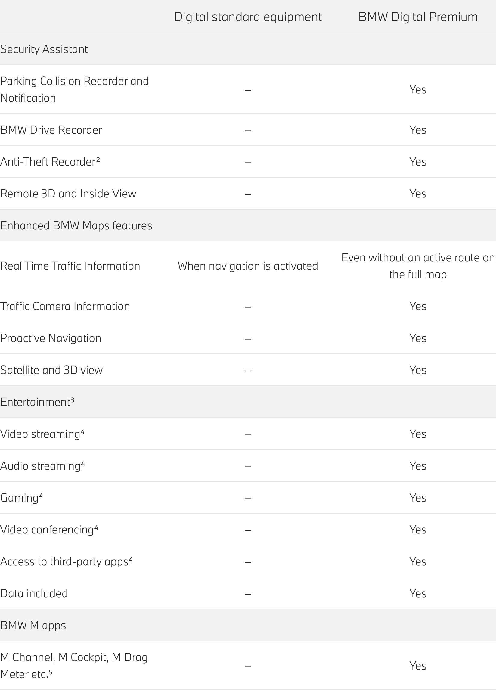 ³ One-off subscriptions may be needed for certain third-party provider apps, which are not included in BMW Digital Premium.